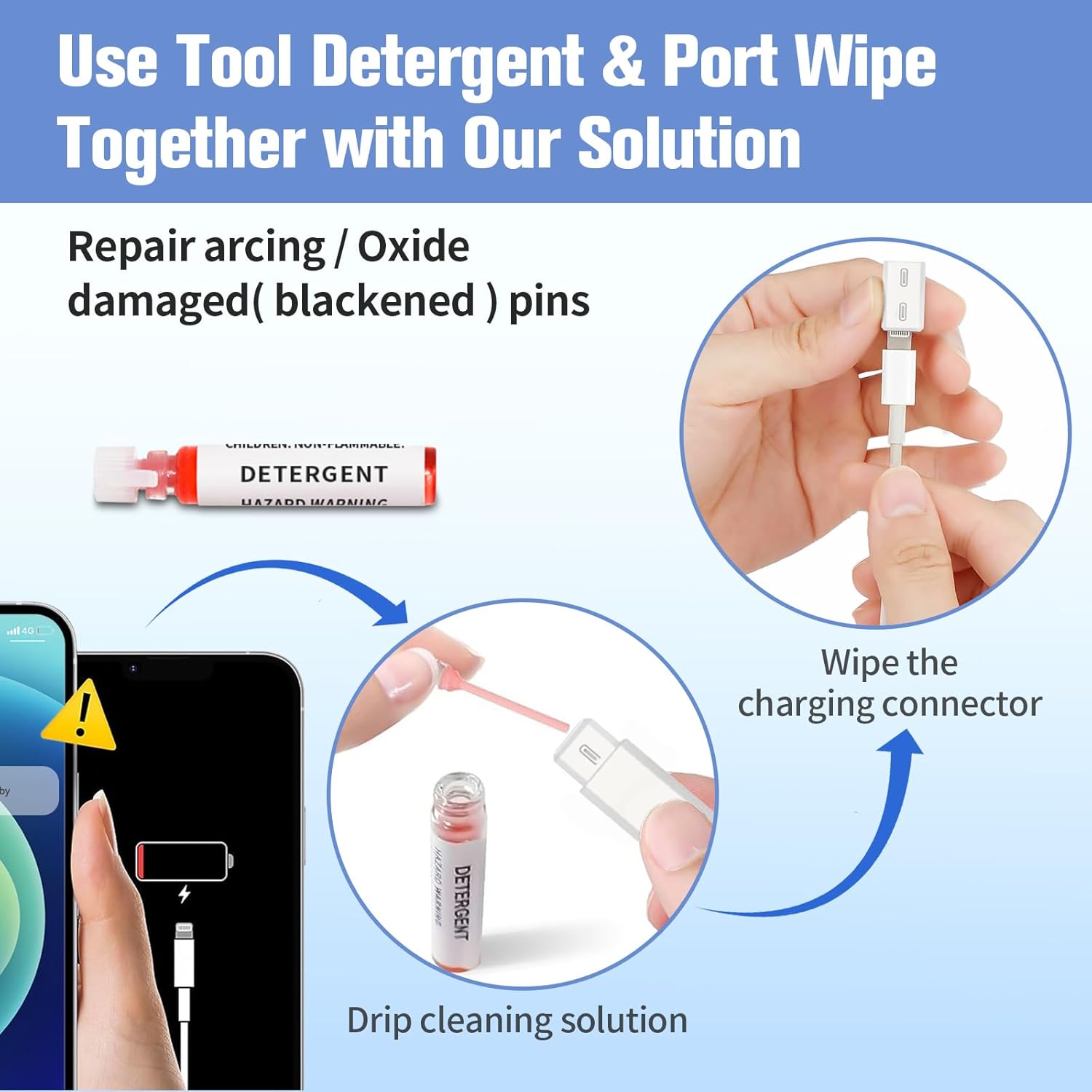 【Fix Unreliable Charging and Poor Connection】- Use the port cleaner and use the included cleaner to clean and repair damaged ports and charging cables to fix intermittent charging, slow charging, and damaged connectors. Charging port cleaner effectively cleans, restores and restores clogged ports and charging cables to eliminate unreliable connections and restore fast charging. Our cleaning kits extend the life of your electronic devices.