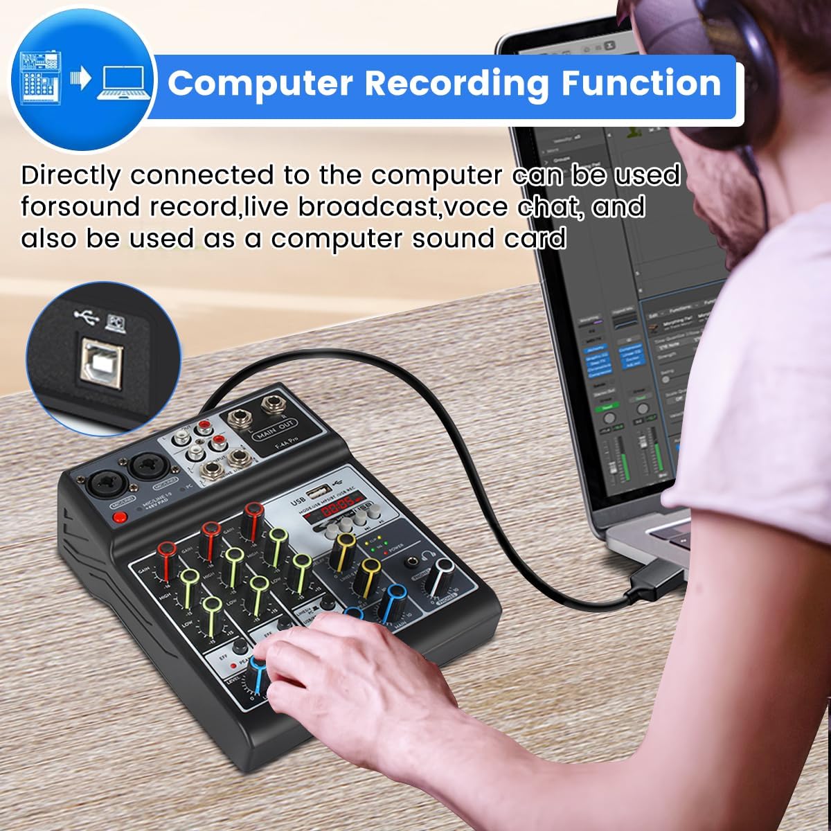 ♫【Multiple Compatibility】Compatible for USB, Flash Reader, MP3. Connect your external USB, computer PC, flash drive, or Bluetooth device to Mix & record; Use the built-in controls to play/pause, skip tracks, and switch between modes.