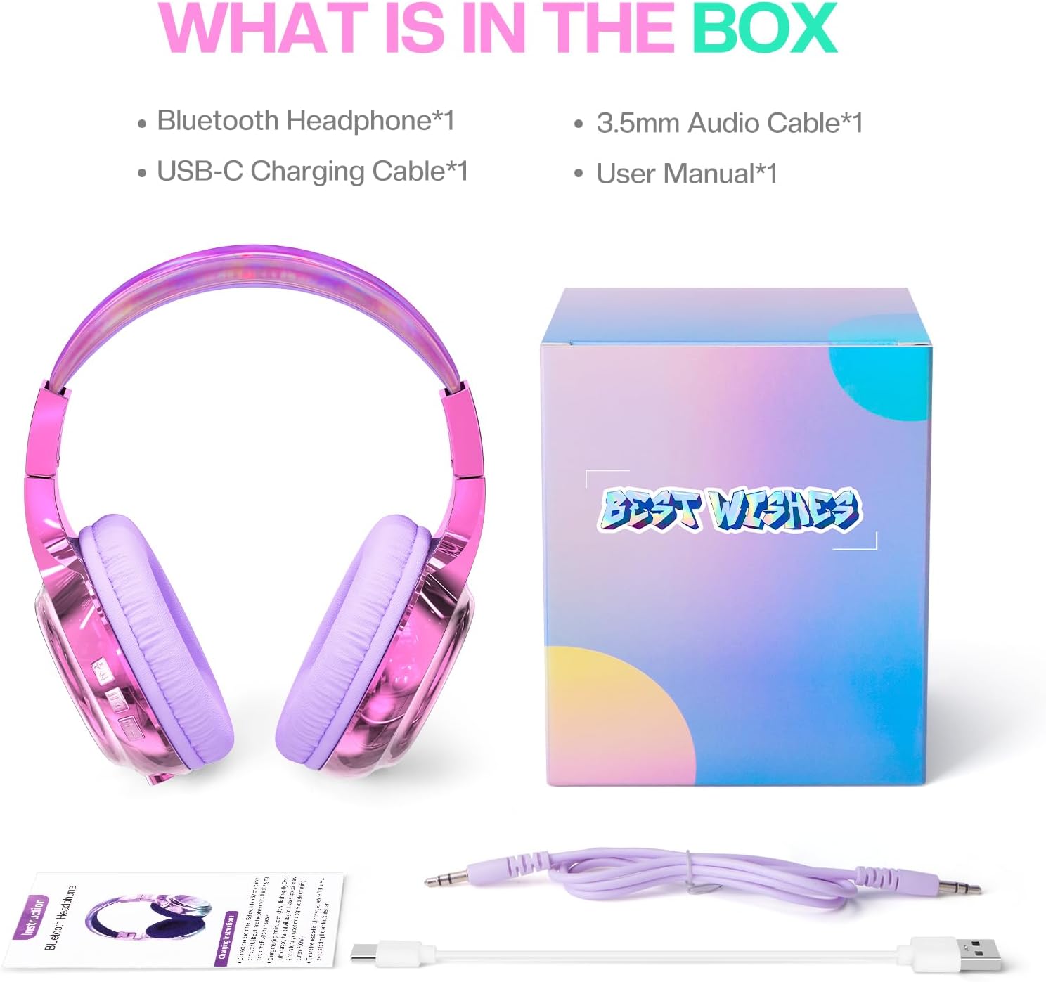 【Perfect Gift Ideas】Kids wireless headphones with beautiful color is very attractive for children. These headphones are perfect gifts for birthday, Christmas and back to school. If you encounter any issues, simply reach out to us via email, and we’ll resolve them within 24 hours.