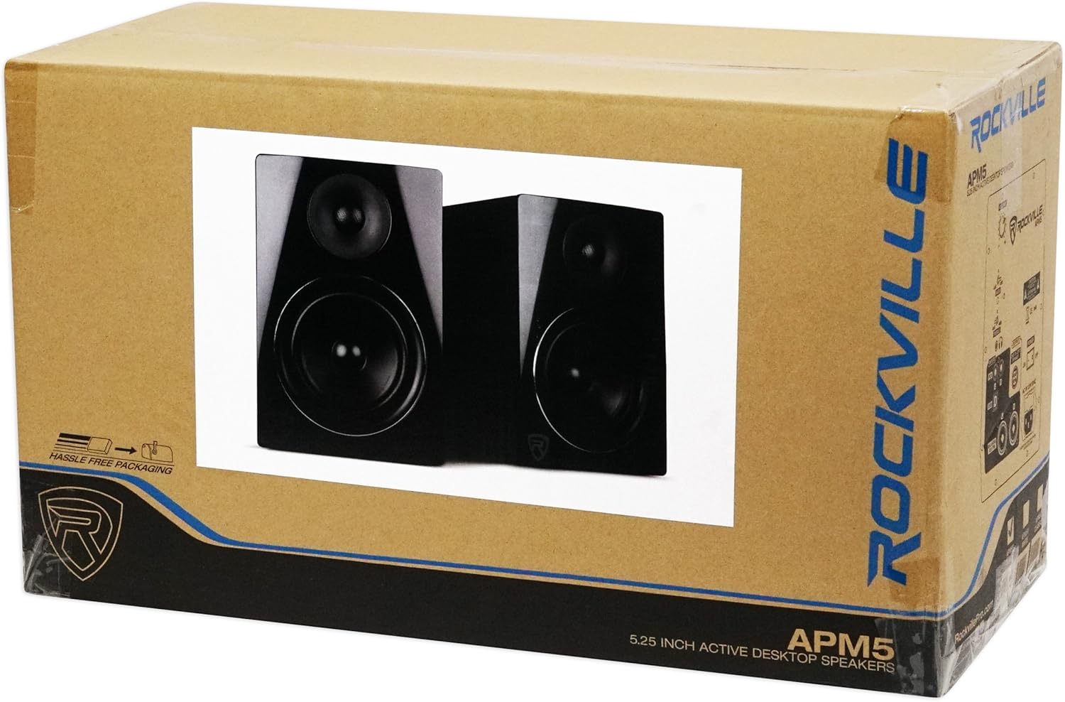 Package Includes: (1) Pair Rockville APM5B 5.25″ 250 Watt Active/Powered USB Studio Monitor Speakers. (1) Pair Rockville RS29B 29″ Steel Bookshelf Speaker/Studio Monitor Stands – Black. Rockville APM5B 5.25″ 2-Way 250 Watt Powered USB Studio Monitor Speakers in Black (Pair). 125 Watt RMS. Two-Way Active Studio Monitor Speaker System. Quad Amp Design: Each Driver Features Frequency Specific Independent Amplifiers