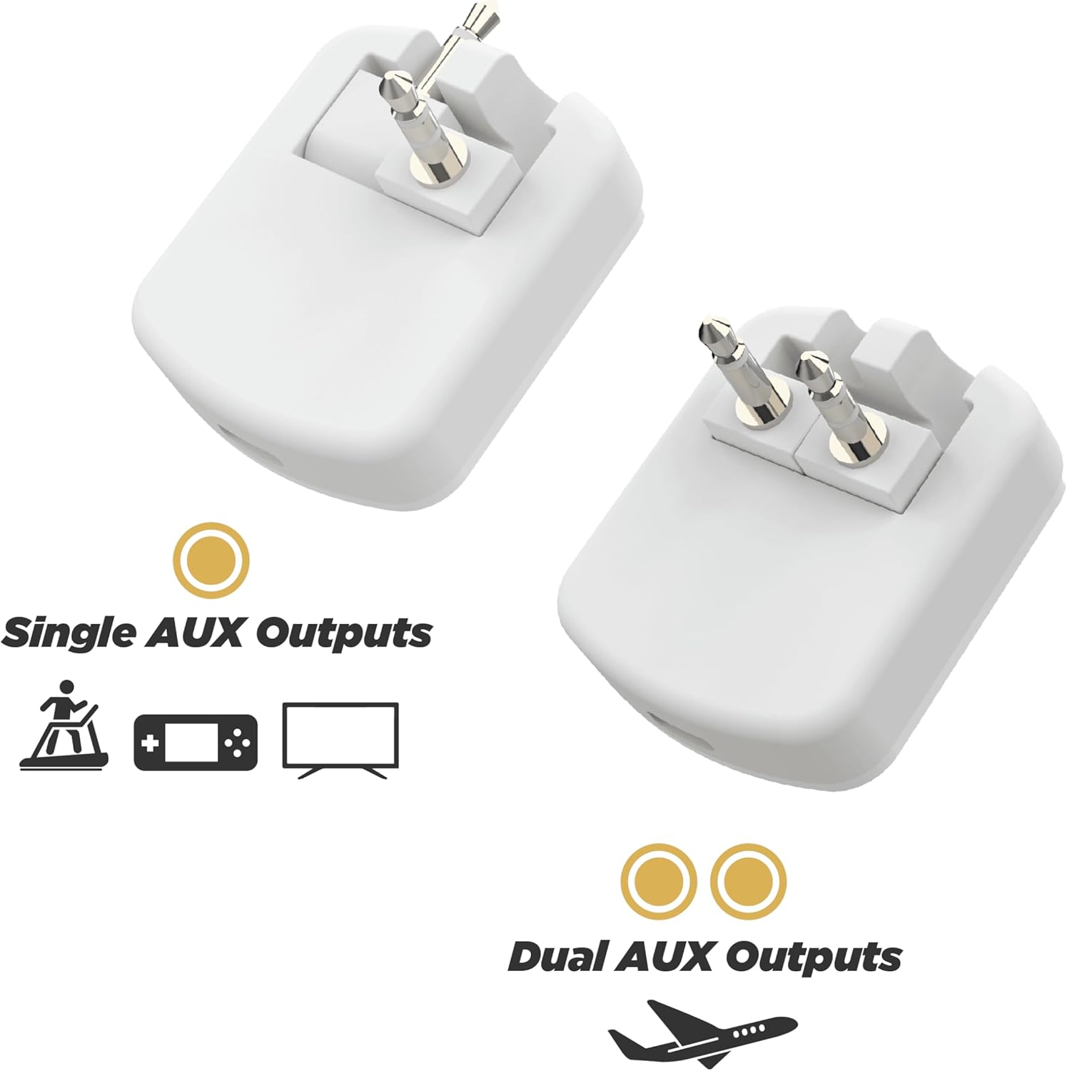 FOLDING AUX 3.5MM PRONGS: Use with either Single or Dual 3.5mm AUX output ports. The prongs fold for a compact design and easy storage and carrying, making this portable device ideal for travel.