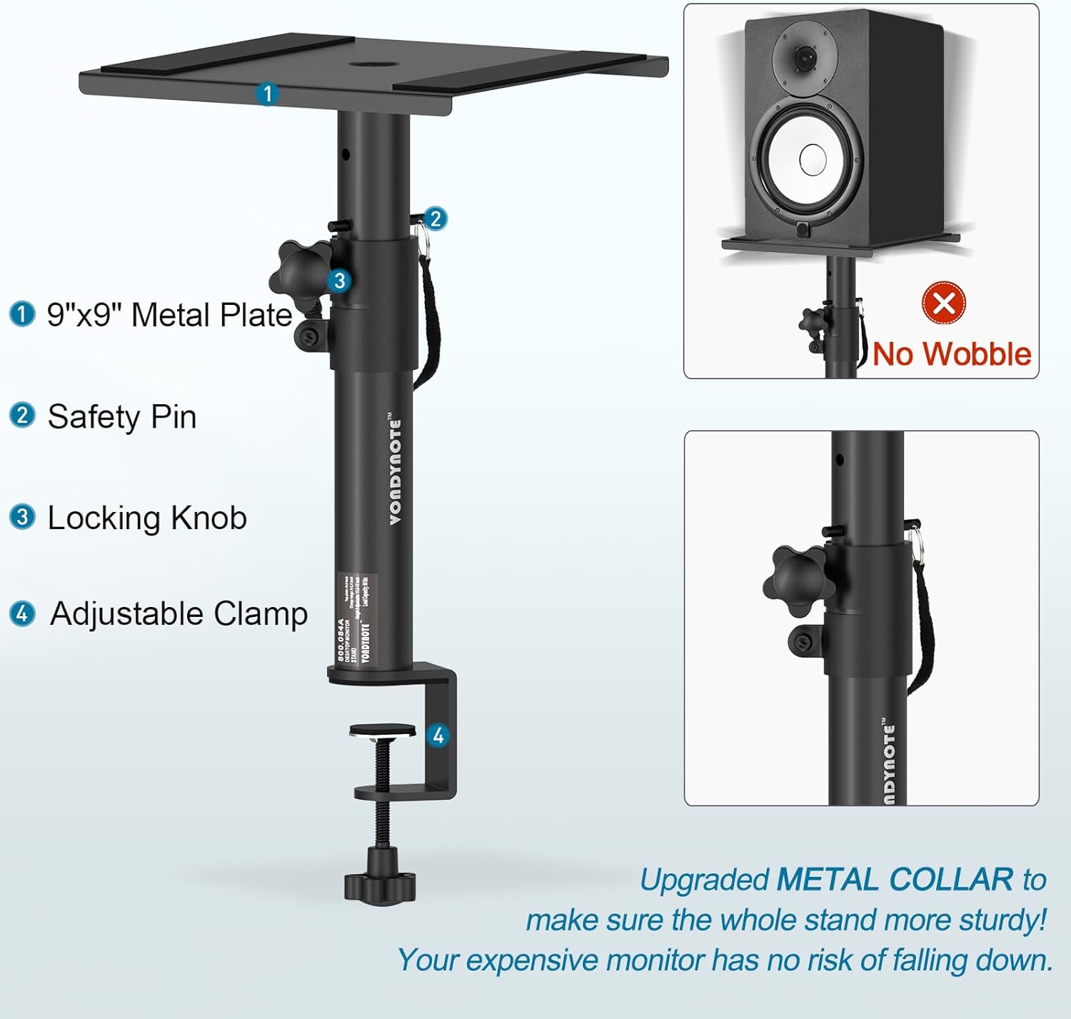 【Universal Compatibility】Comes with 9″x 9″ metal top plate, 2mm EVA anti-skid pad is helpful to avoid speaker vibrate. It fits most studio monitor speakers up to 50 lbs(23kgs). You can place your studio monitor, laptop, CD player or projector.