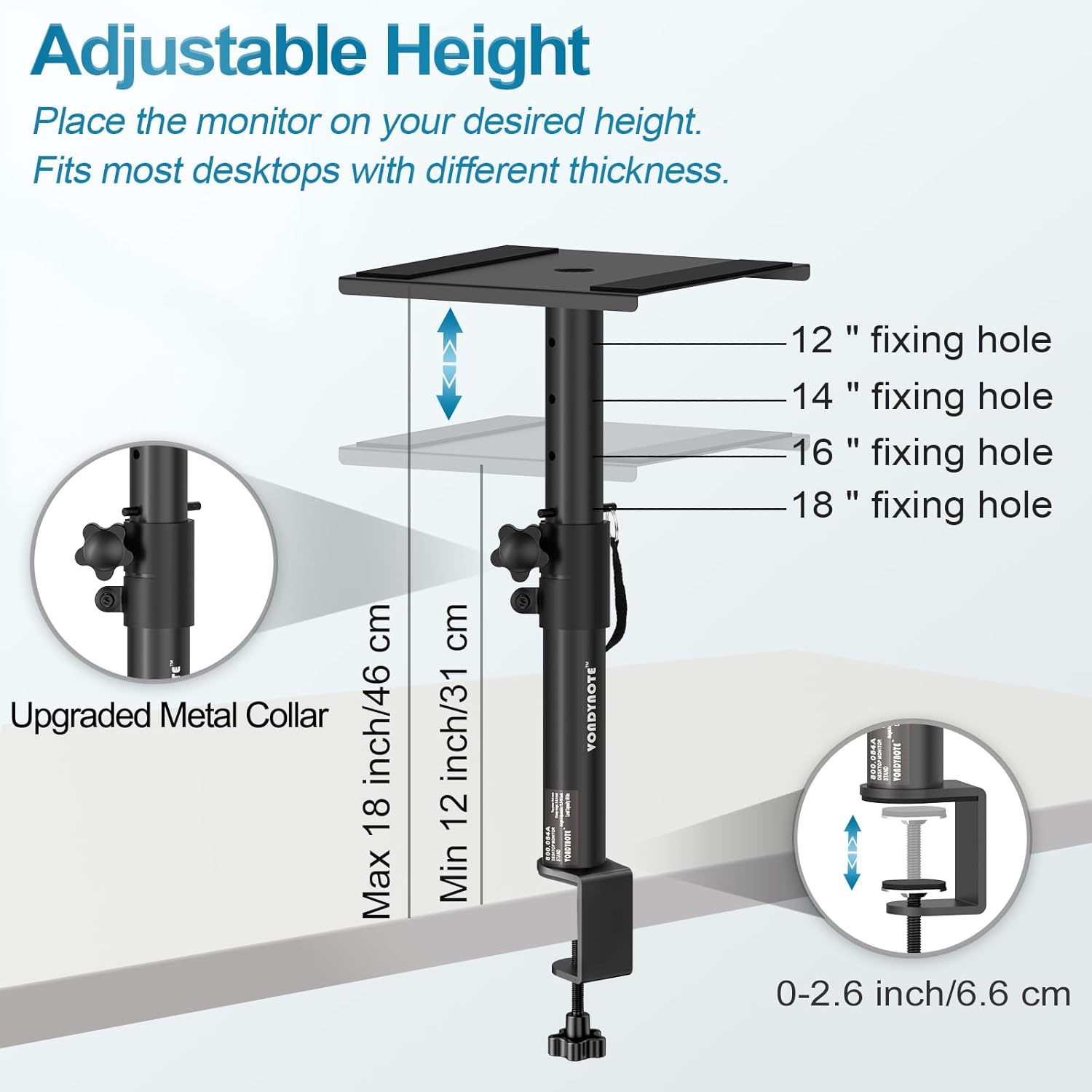 Set of 2 Studio Monitor Stands Desktop Clamp Speaker Stands Height Adjustable