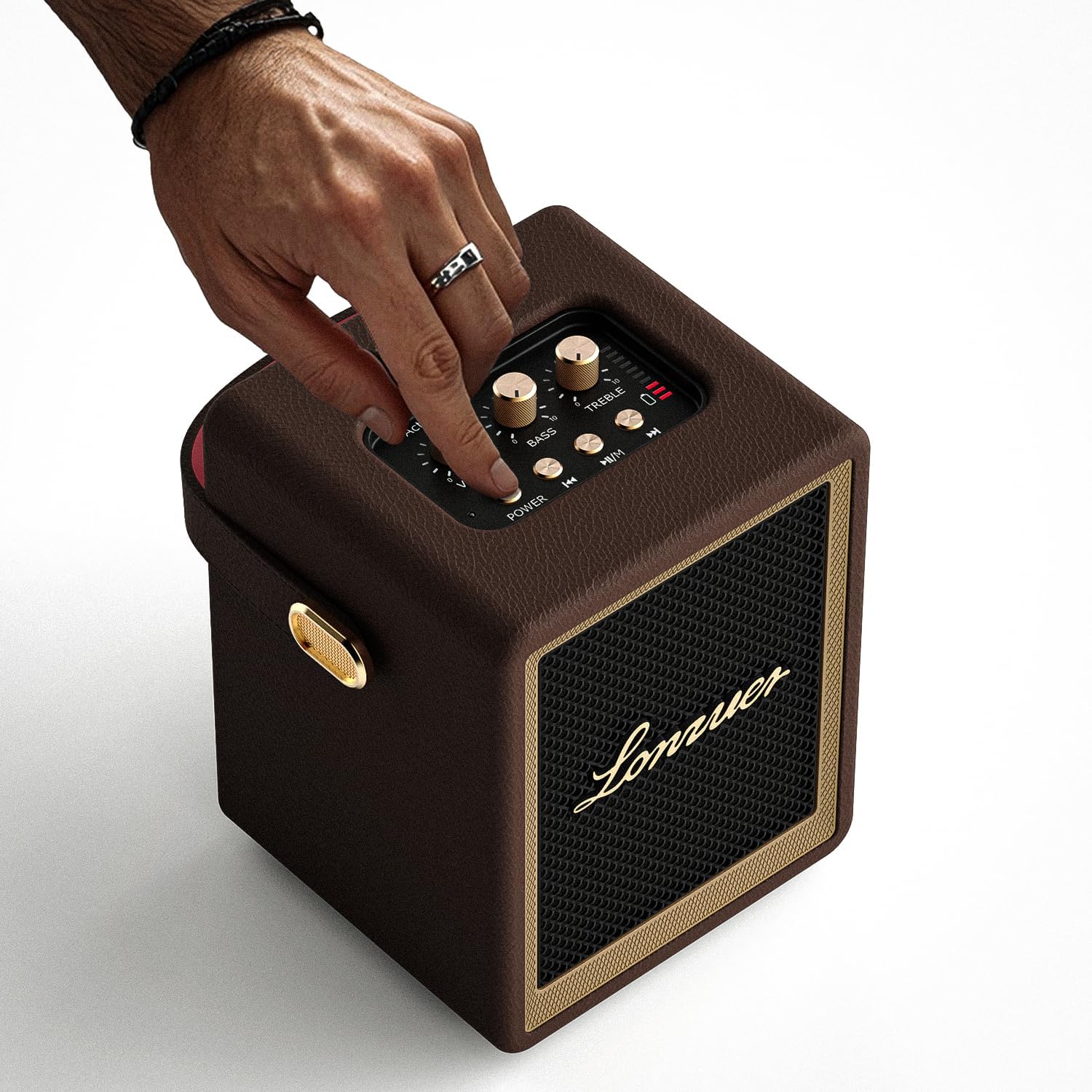 Lonzuer is a professional manufacturer of Bluetooth speakers,We have production experience over ten years and is perfect for any room, big or small. It delivers on the promise of high-performance sound that is synonymous with the Lonzuer name. ACTION BT Speaker produces clean and precise Audio, even at the highest levels, due to advanced components such as one 10 watt class D amplifiers powering its tweeters and a 15 watt class D amplifier to drive its mighty subwoofer. With Bluetooth 5. 3,you can play your music in glorious, stereo sound with no wires required. Controls and Connectivity: Top Panel Controls Source button,Volume control knob,Bass control knob,Treble control knob,Power button,Previous song button,Play/Pause button,Next song button