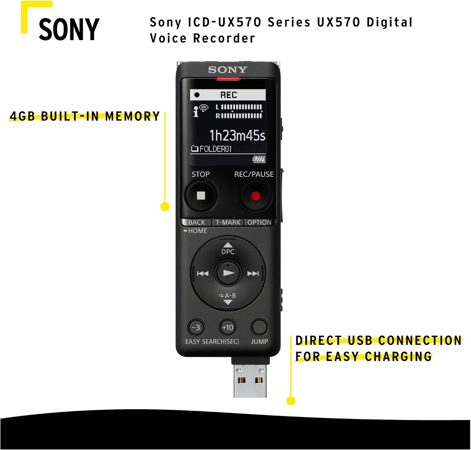 - Sony ICD-UX570 Series UX570 Digital Voice Recorder (Black)