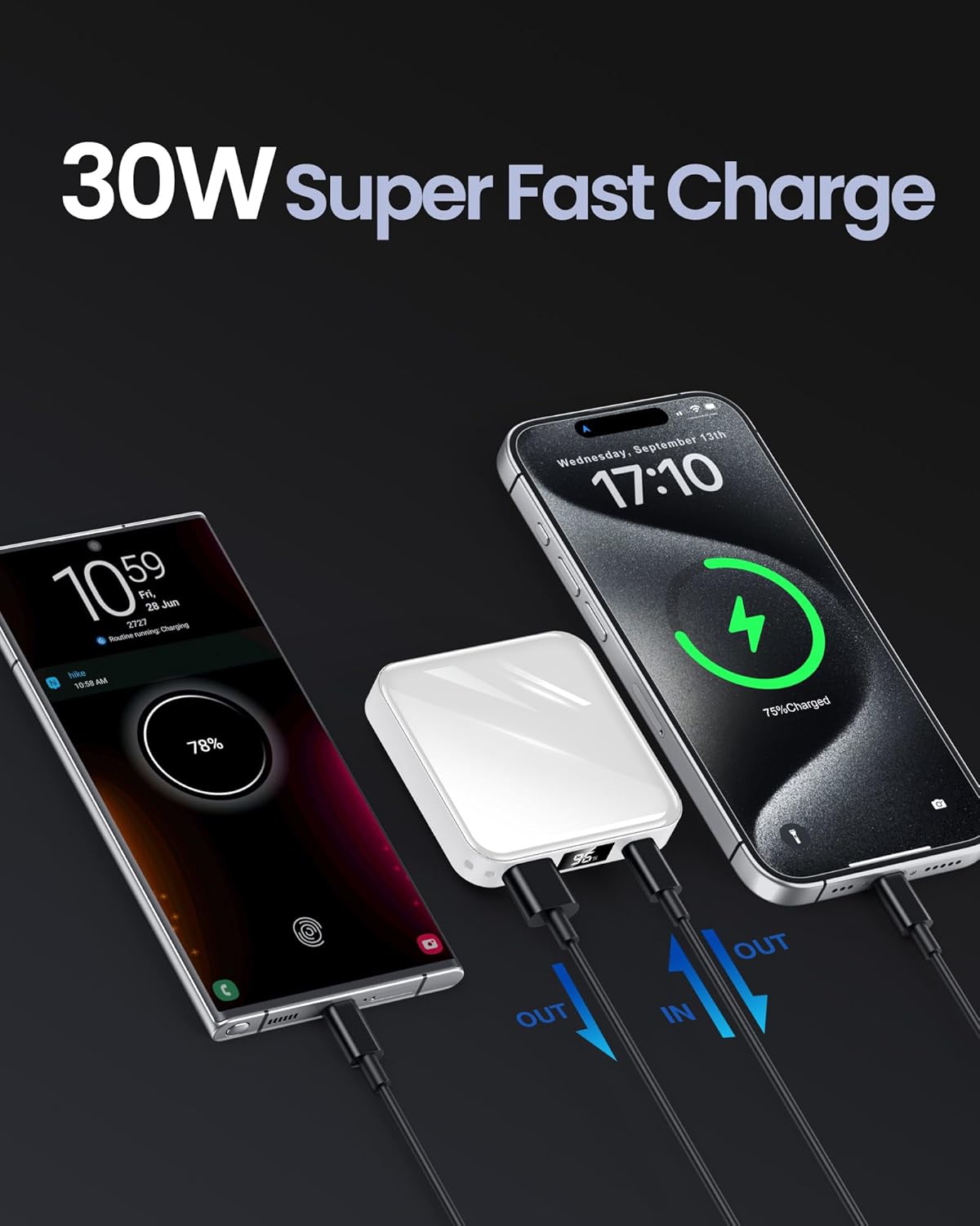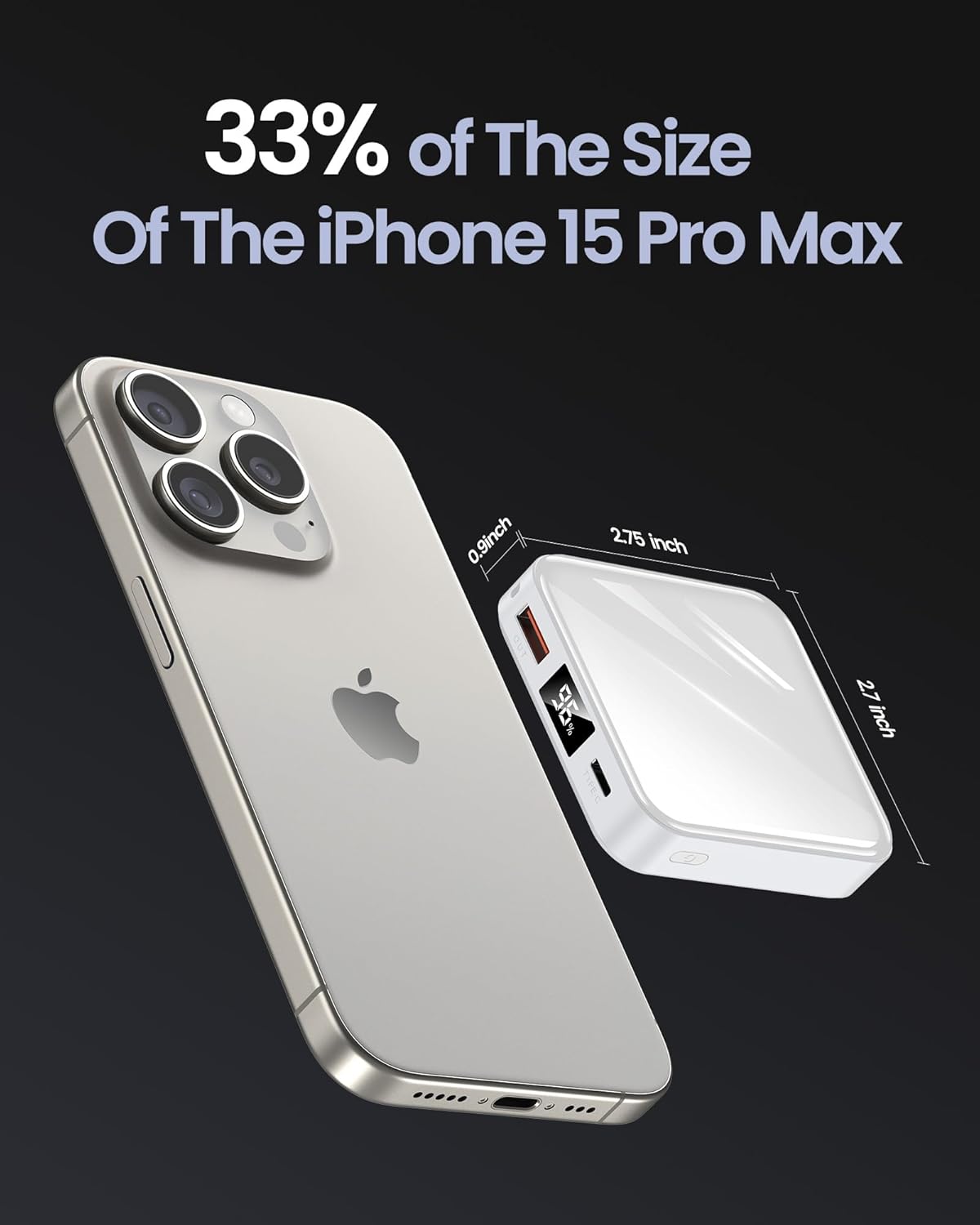 The Smallest and Lightest 10000mAh Small Power Bank,Fast charge Mini Portable Charger, USB C Input/Output with External Battery Pack, Smart LED Display,Suitable for iPhone, Samsung, iPad and tablets.