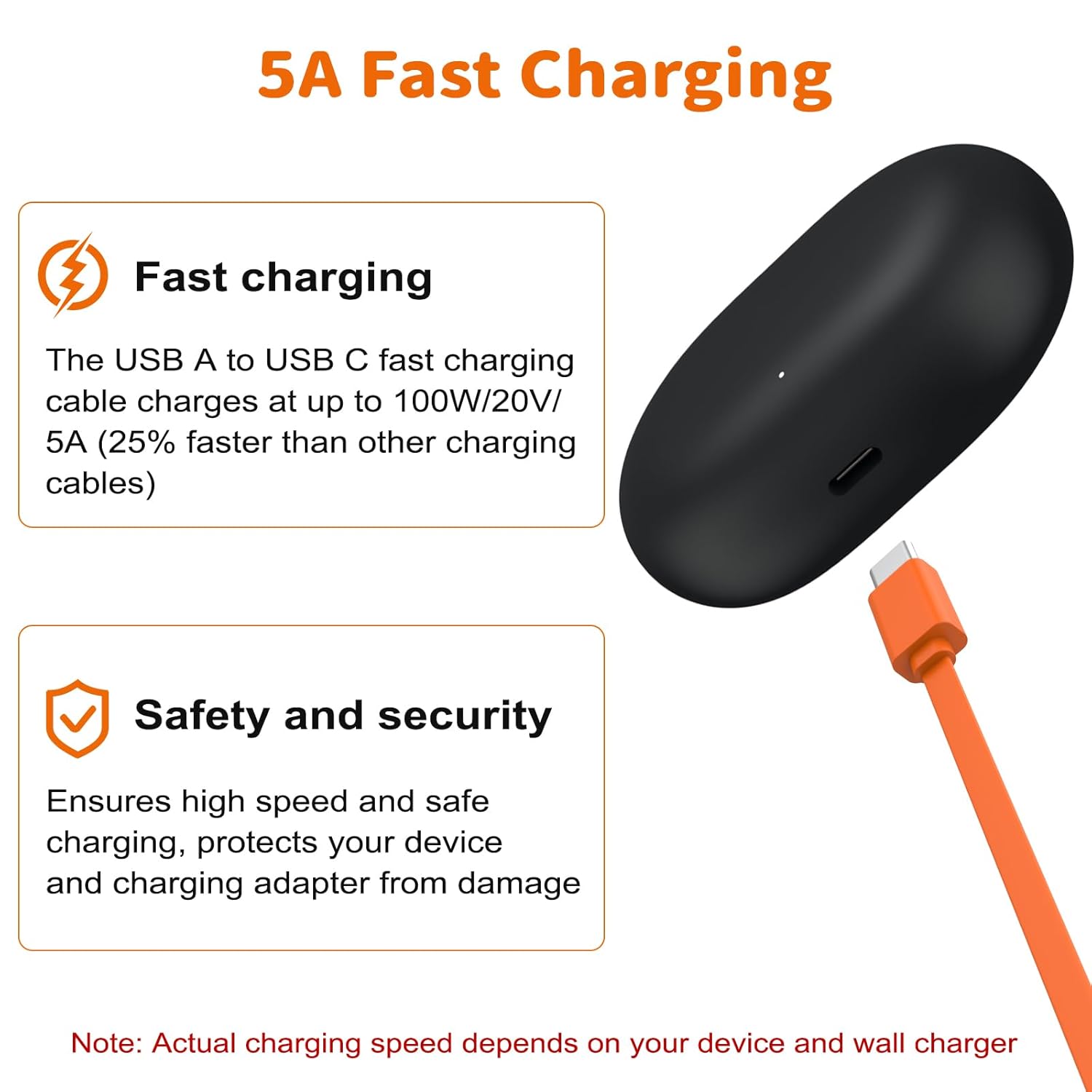 5A FAST CHARGING: The USB A to USB C fast charging cable charges at up to 100W/20V/5A (25% faster than other charging cables), ensures high speed and safe charging, protects your device and charging adapter from damage. Note: Actual charging speed depends on your device and wall charger.