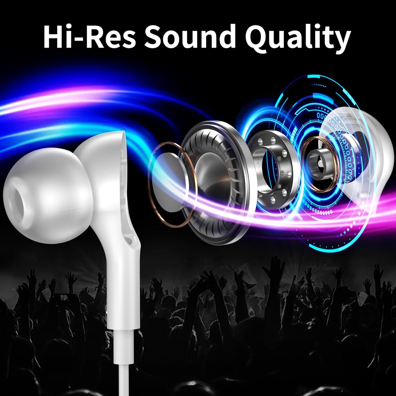 These USB C earbuds wire made of thicker TPE material with oxygen-free copper inside, not easy to tangle and long-lasting use.