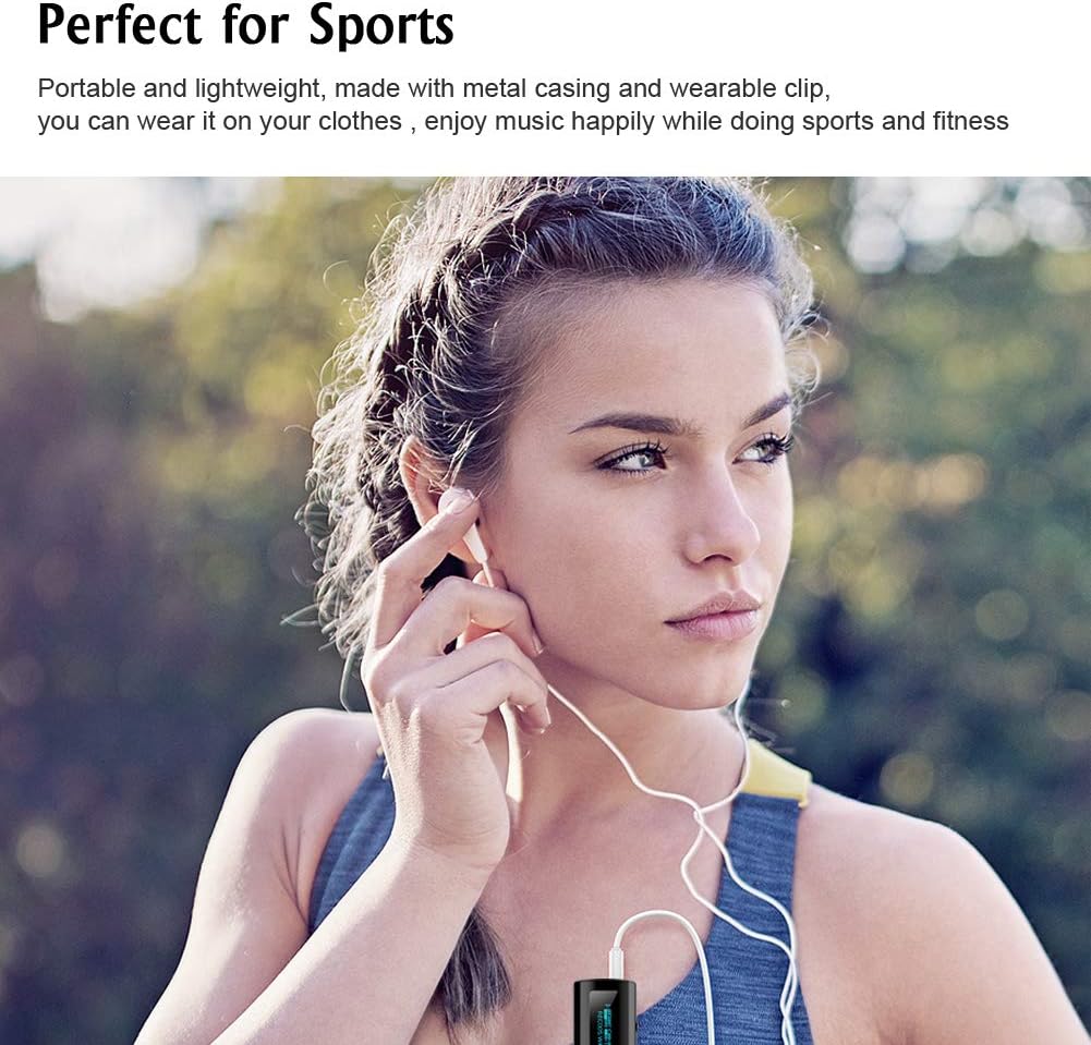 MP3 Player for Walk – Mini music player with FM radio. Enjoy your private music/radio by plugging in your earphones without affecting others. FM radio can store more than 30 stations, 8G built-in capacity and expandable 64G TF card(not included) allows you to enjoy the fun of music at any time.