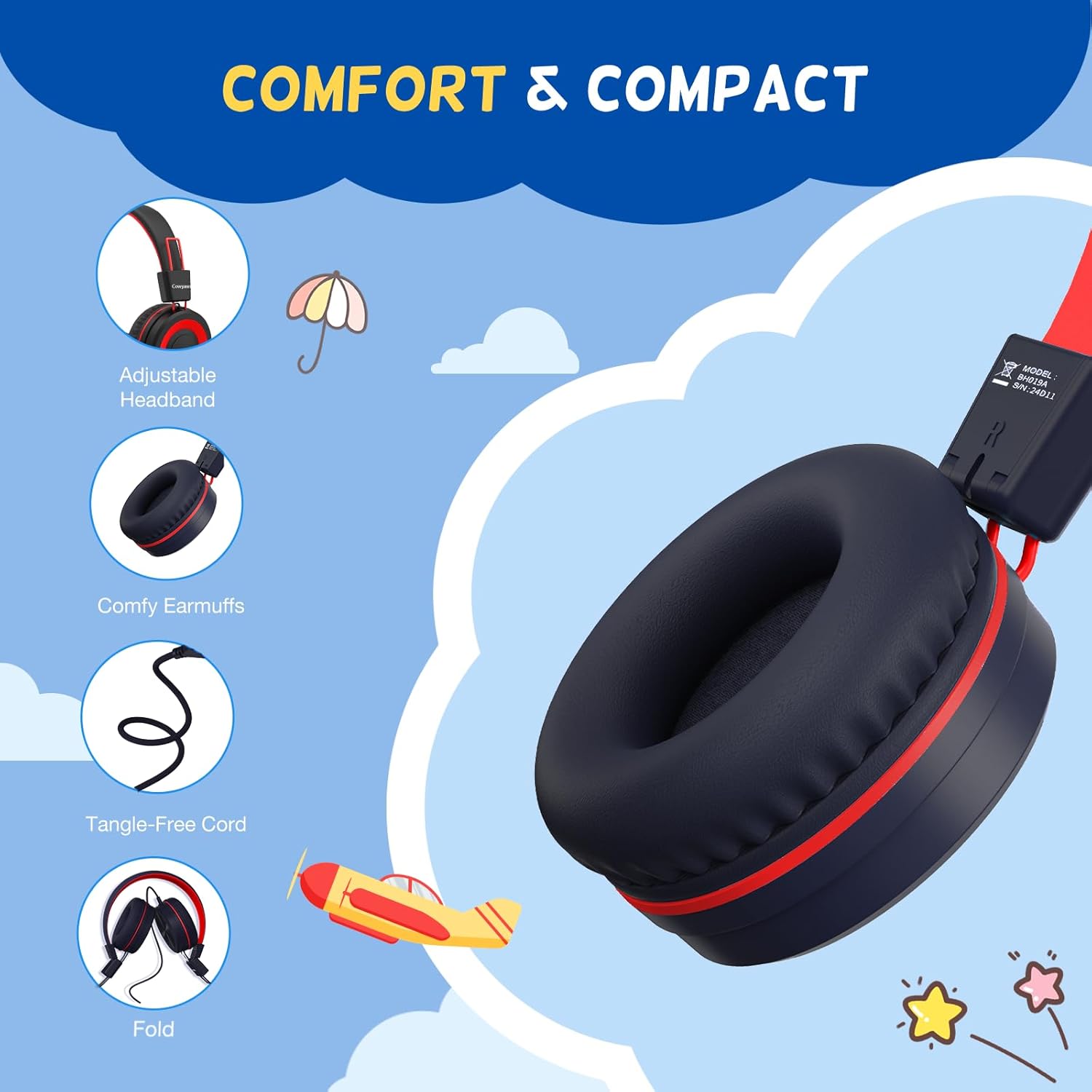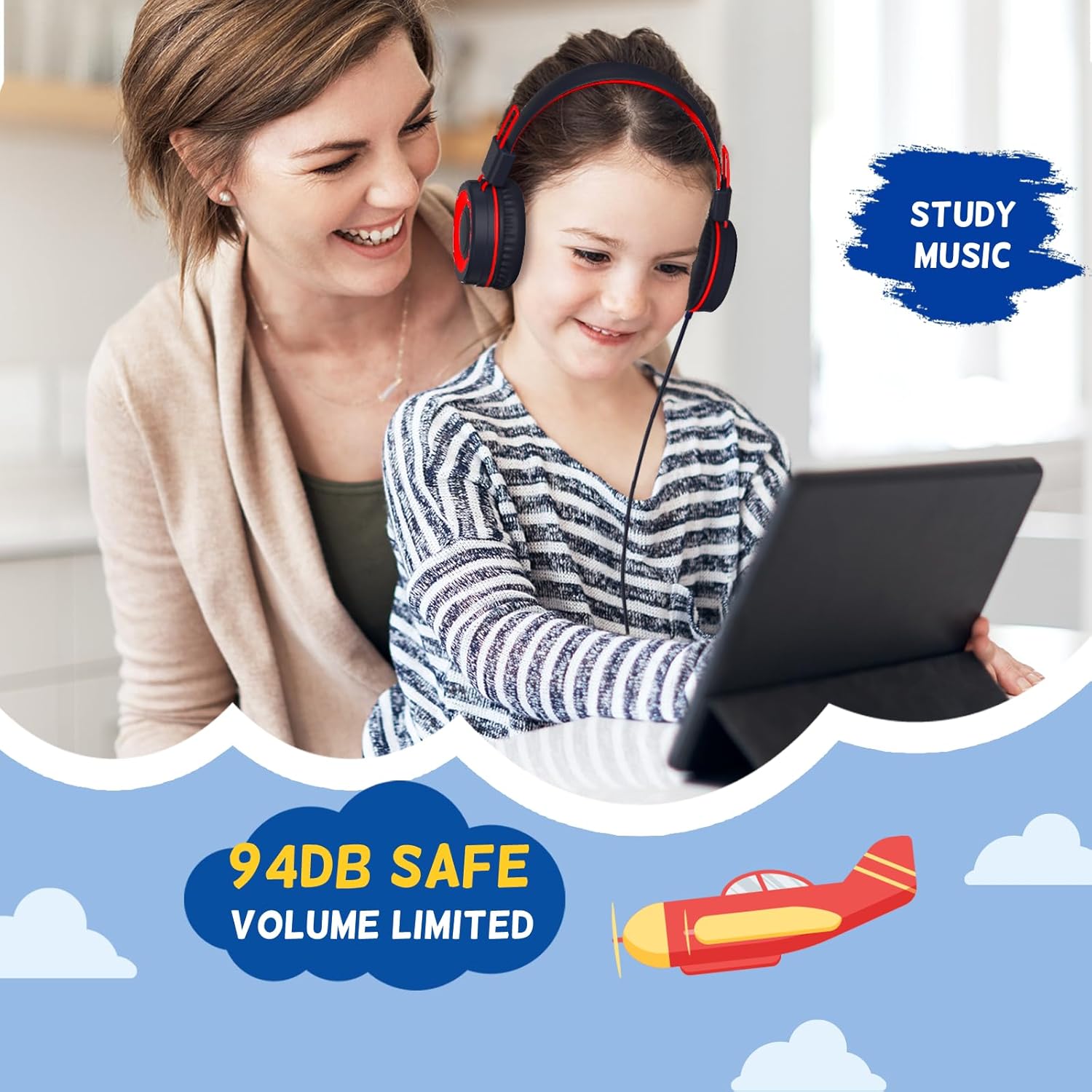 94dB Volume Control: On ear type c headphones wired specialise for kids, volume control design of the kids headphones can prevent damages to kid’s ears in daily life. Kids usb c wired headphones utilize a built-in volume limiter to maintain the sound pressure level (SPL) below the recommended 94 dB limit, keeping young ears safe and helping build lifelong good listening habits