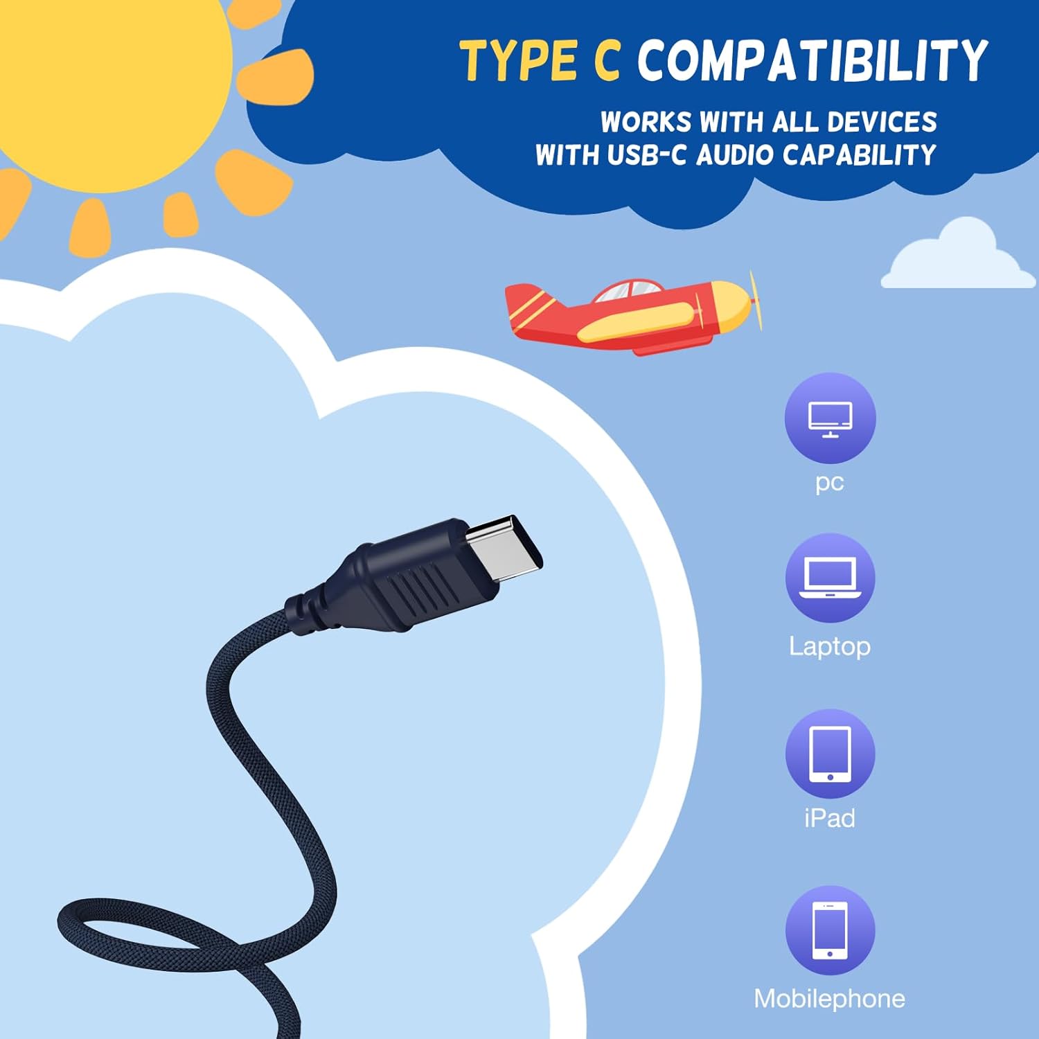 Stereo Sound: The kids headphones with usb c wired built-in 40 mm audio driver to ensure excellent sound effect, the best choice for your children to study, listen to music, watch movie, play game, talk with friends and have fun, no matter at home, in school or travel. Wired usb c headphones also making them perfect for Online Courses and Voice calls