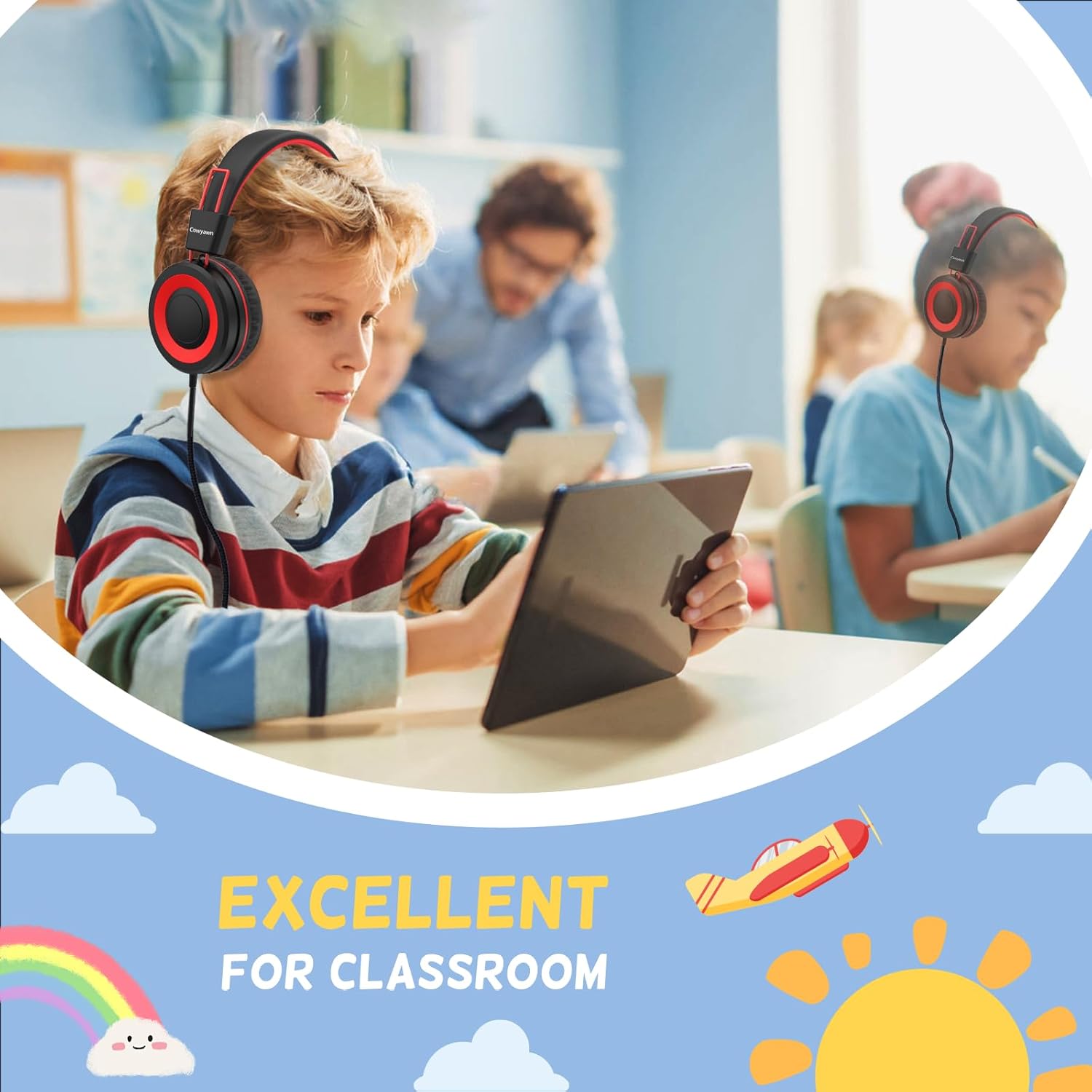 Upgrade USB-C Kids Headphones for School: Cowyawn kids headphones wired usb c for school is follow connector new trend. Kids headphones usb c is special designed for a wide range of mobile devices and PCs using the USB type C headphone jack (Please note: not compatible with USB-C charging port). No need usb converter, hassle-free plug-and-play functionality