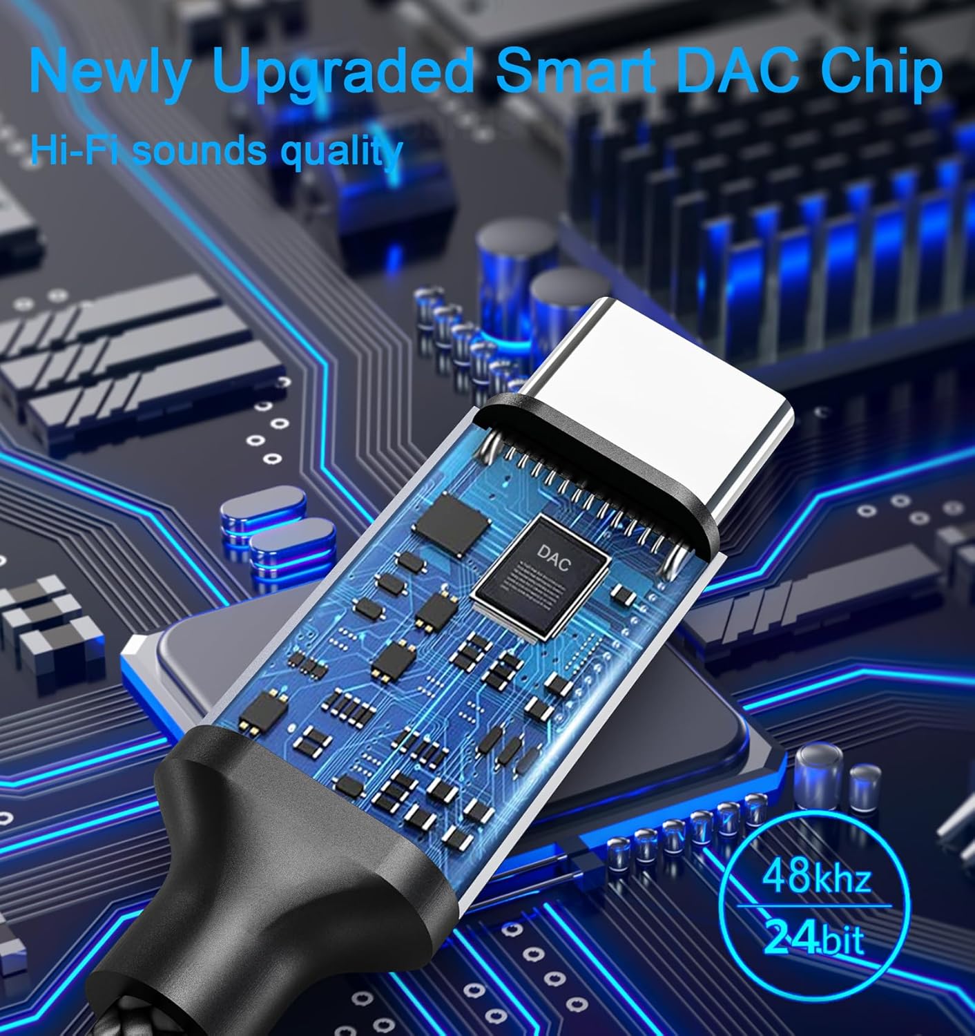 【 Built-in 2024 Upgrade Smart DAC Chip 】 The USB C to 3.5mm audio adapter features a Smart DAC chip. It is low power consumption and has a faster transmission speed, while compatible with more USB C equipment.