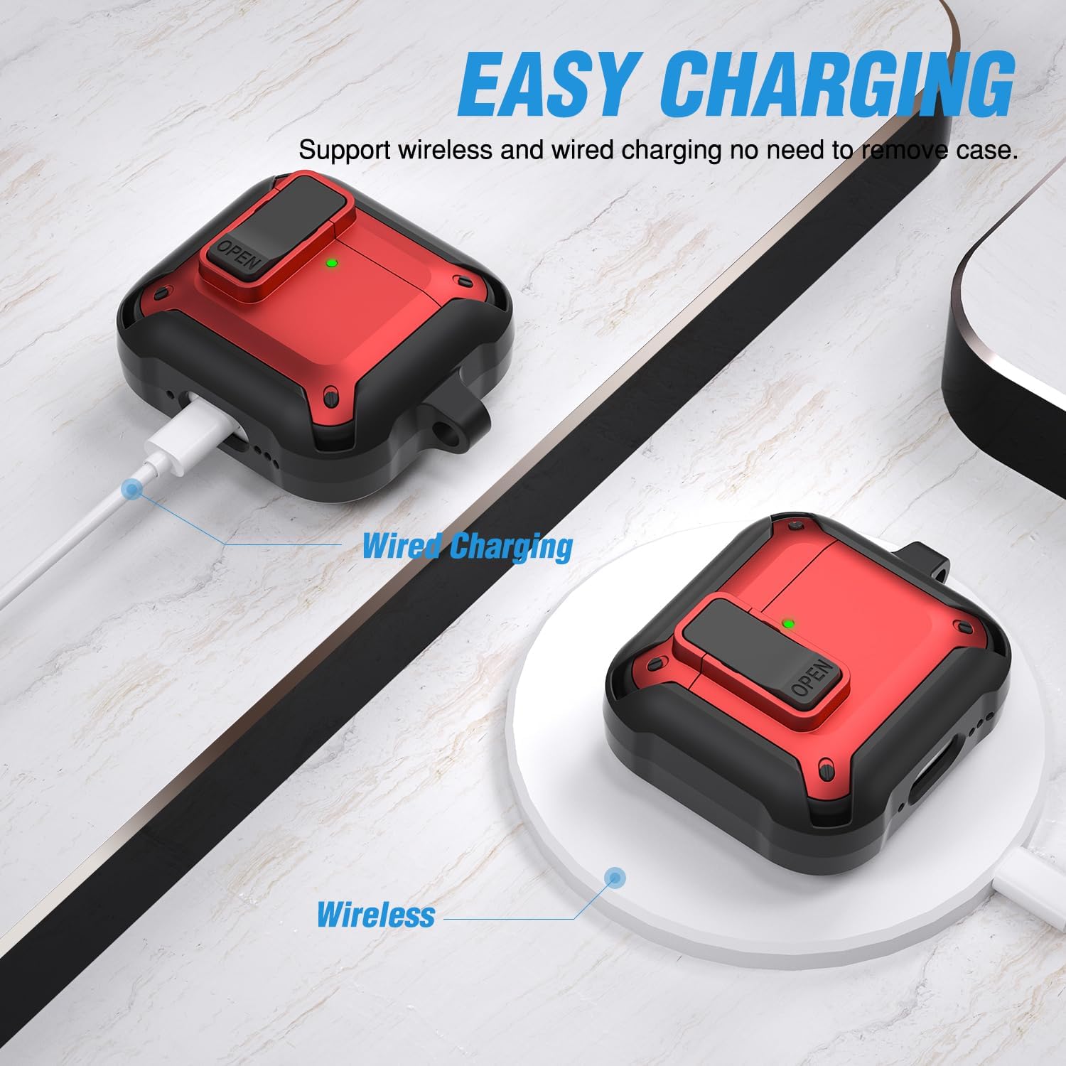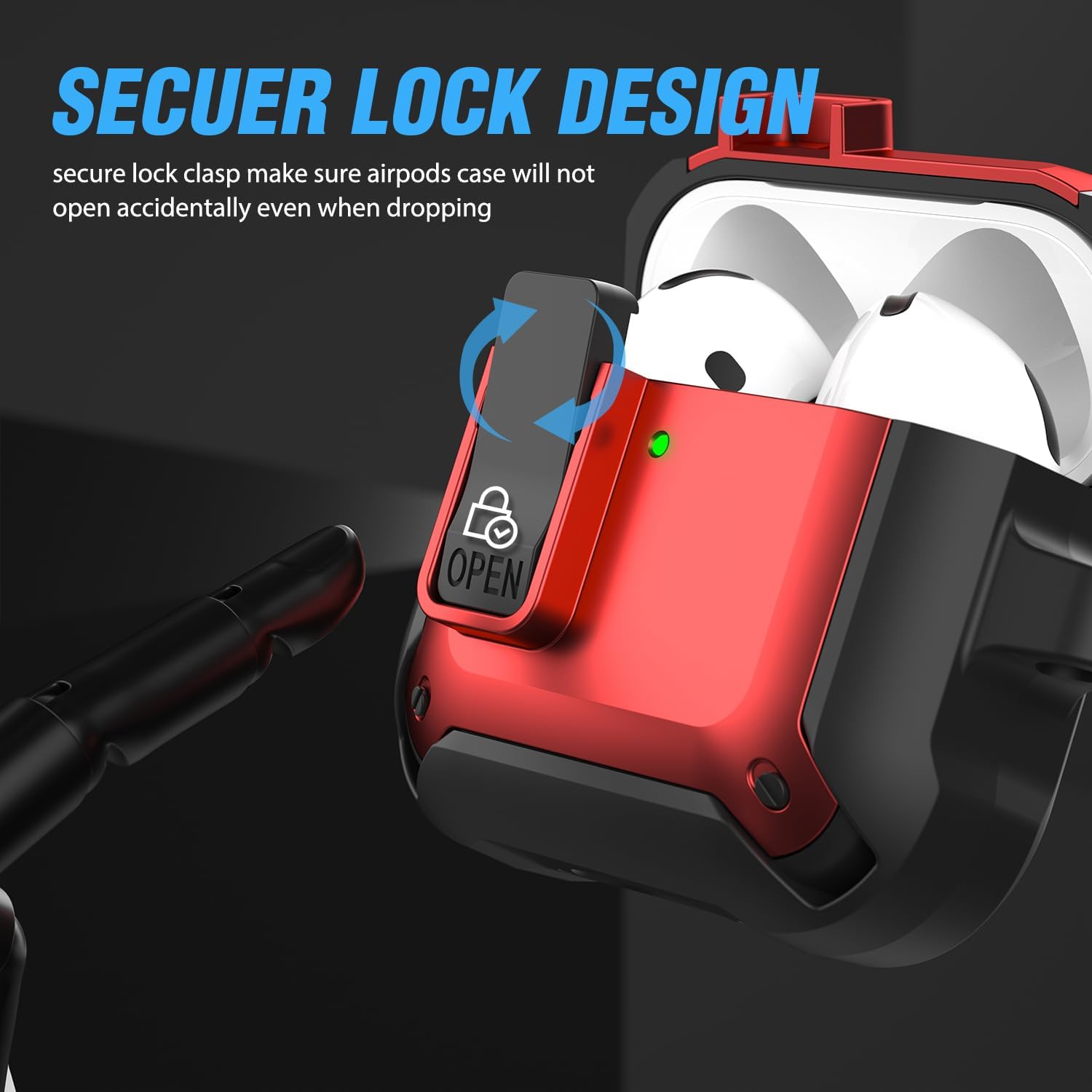 【Secure Lock】The rugged shockproof case is made of military-grade resistant TPU material, which protects your Airpods 4 case cover from drops, scratches and bumps. The locking clip keeps your Airpods 4 case closed and secure the top lid from falling off.