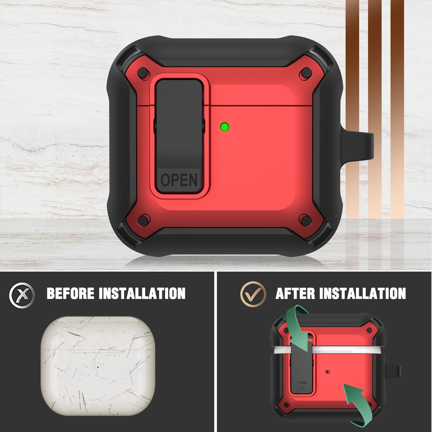 【Added Carabiner】Each case comes with a metal solid keychain, which is easy and convenient to carry your airpods 4th case 2024 anywhere. The carabiner can be attached to your bag, backpack, belt loop and keys at your convenience.