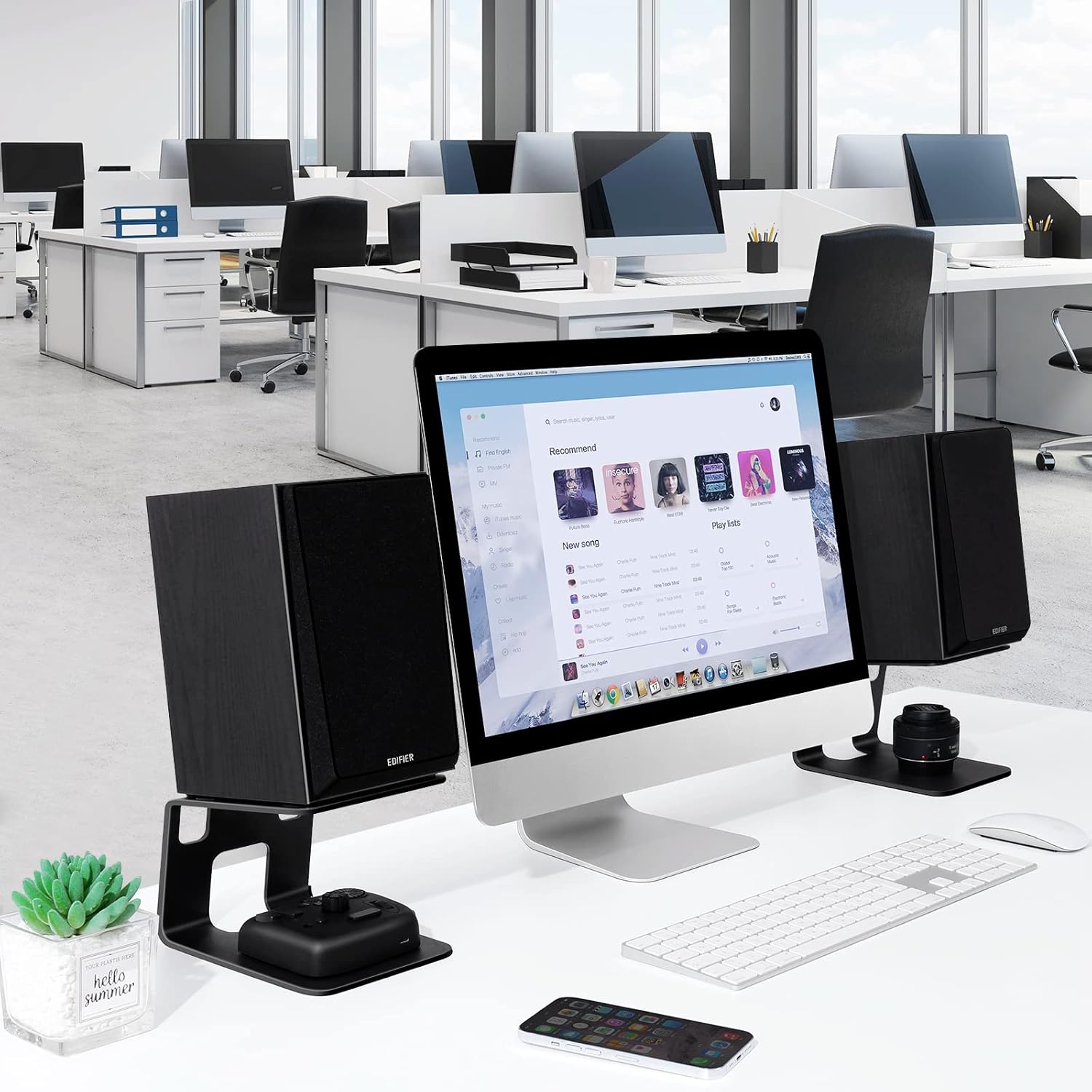 SPACE SAVING DESIGN: The C-shaped design allows you to place items like audio amplifiers under the speakers, freeing up valuable desk space. Plus, the stylish black speakers stand pair add a touch of elegance to any workspace.