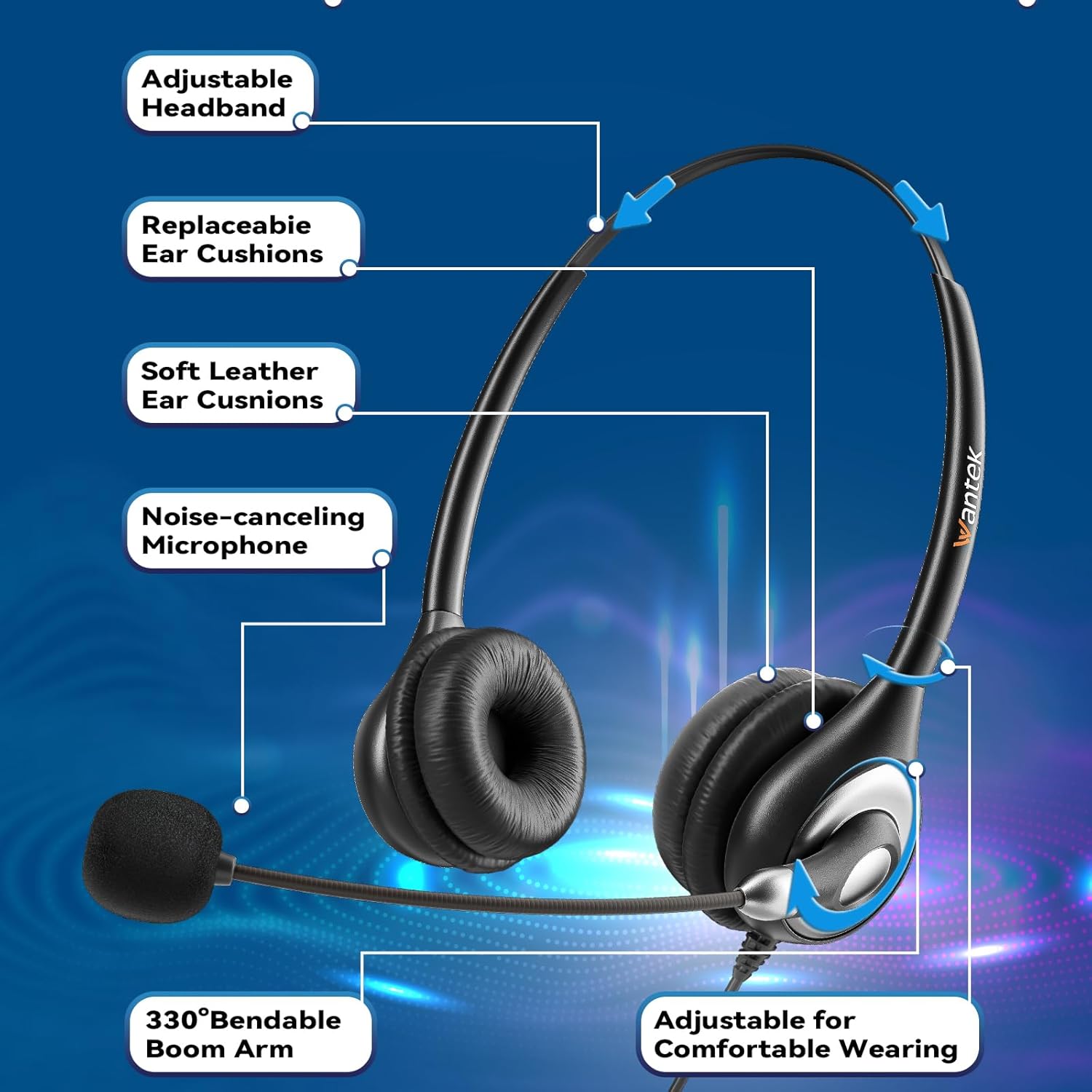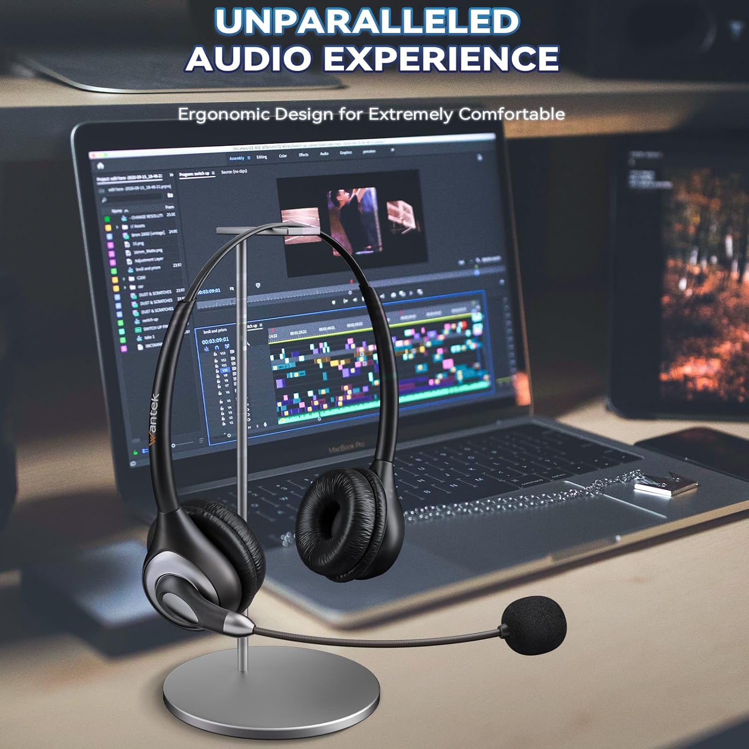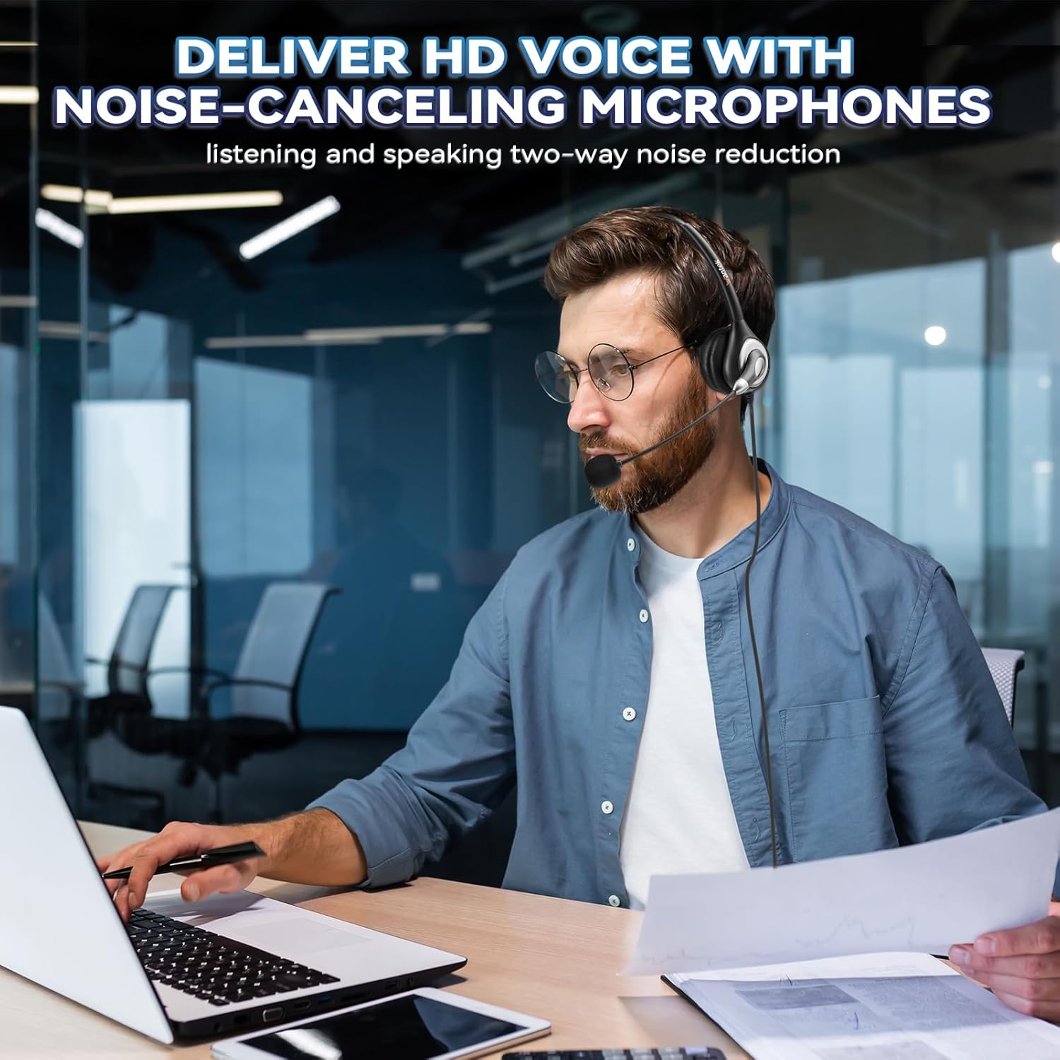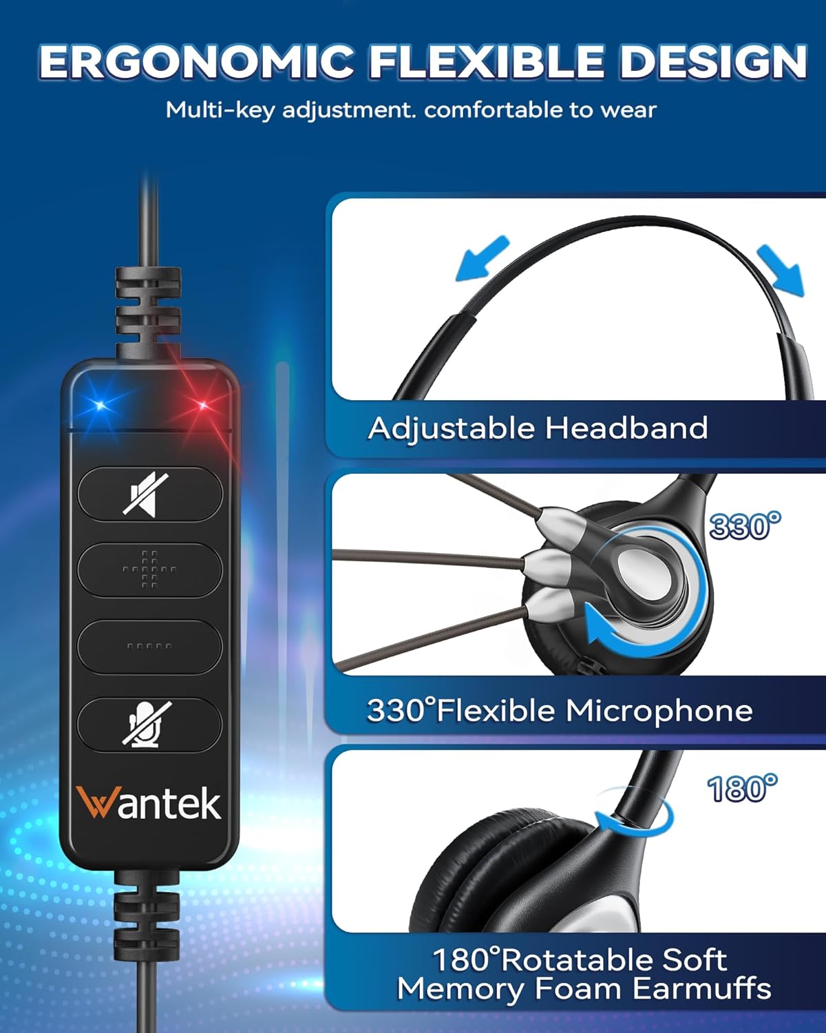 Wantek Laptop Headset with Microphone, USB Wired Headphone with Noise Canceling Ultra Lightweight Comfortable Work Headsets for Business Office Call Center