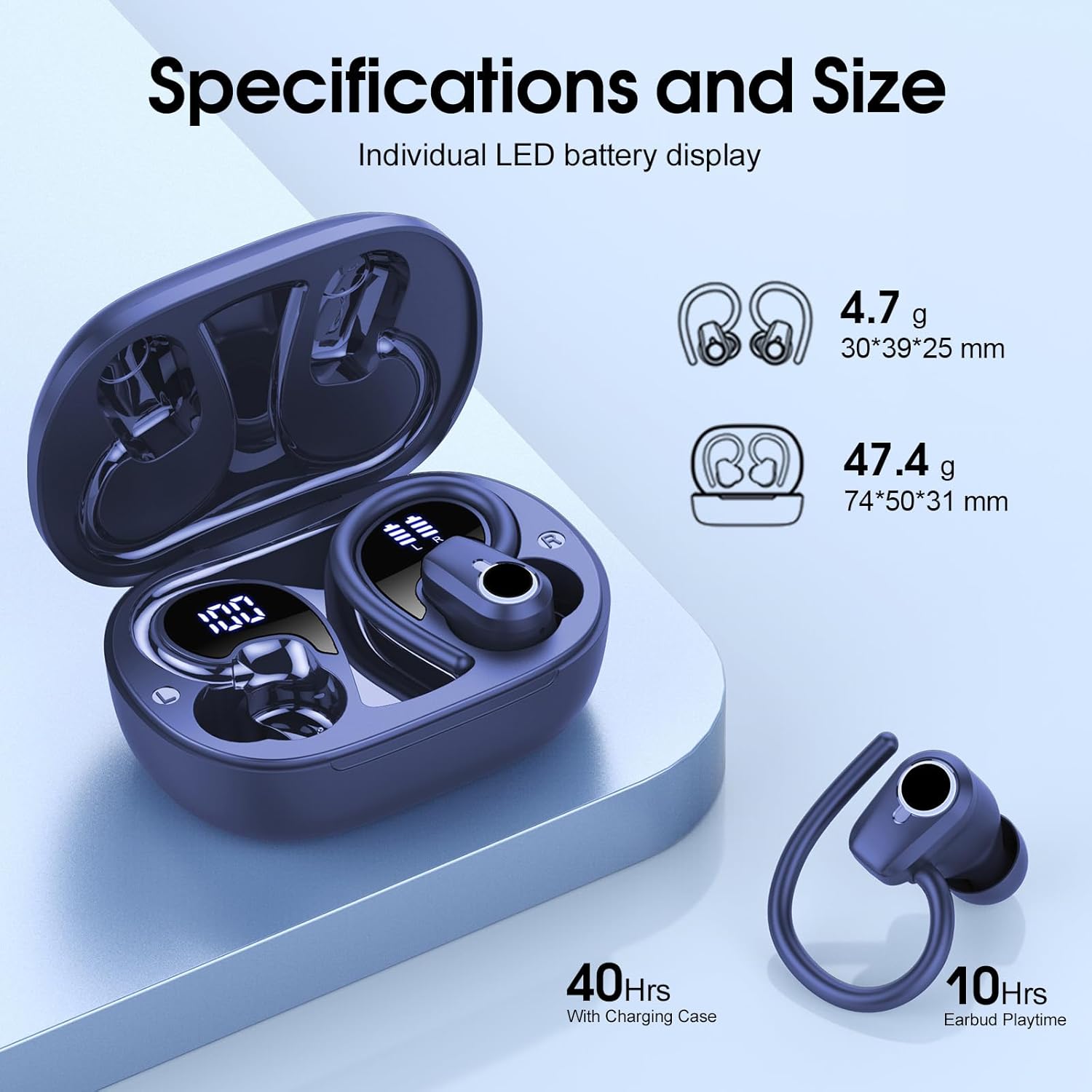 Wireless Earbuds, 2023 Bluetooth Headphones 5.3 Sport, 50H Ear buds with Earhooks, Dual LED DisplayBluetooth Earbuds, Stereo Noise Cancelling Headphones, IP7 Waterproof Running Earphones, Deep Blue