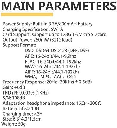 Accommodate massive Non-destructive resources —-Supports up to 128G TF/Micro SD card, It can store more than 3,000 WAV or 6,000 FLACIAPE lossless songs, calculated as 4 minutes for a single song, 24.000 minutes without repeating any, enjoy the wonderful feeling of music.