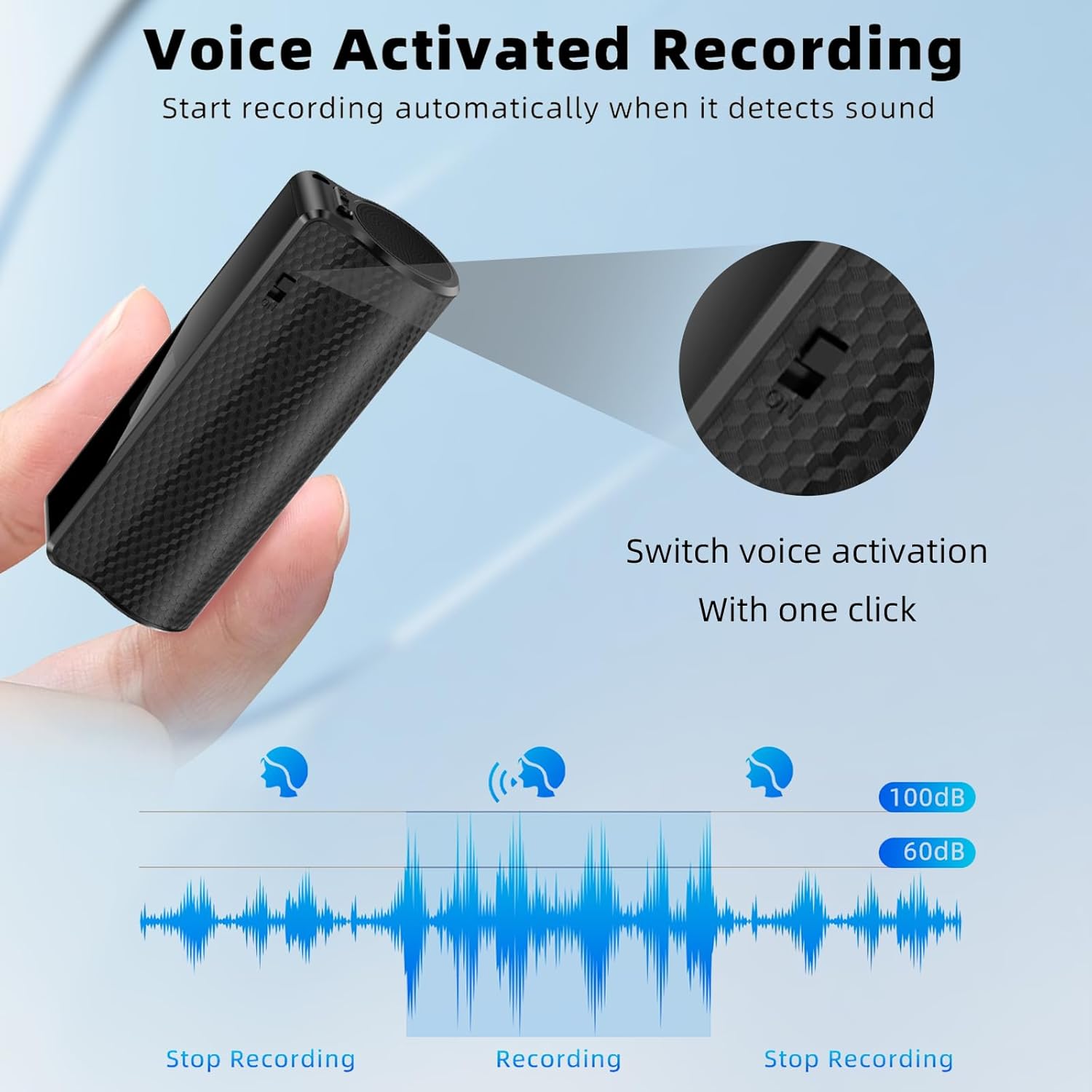 ✅【One-touch operation】This recorder device is equipped with one-touch power-on and save functions, allowing you to easily start the device and provide protection measures to ensure safe operation. Additionally, the one-touch voice activation feature enables you to enjoy a convenient hands-free experience without the hassle of complicated operations.