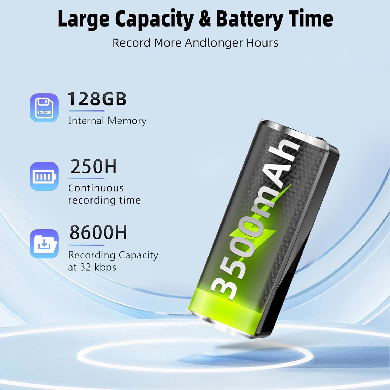 ✅【25 Days continuous recording】The audio recorder is equipped with a 3500mAh large-capacity battery, capable of supporting continuous recording for up to 25 days or 600 hours. With just one charge, it meets the usage demands of various scenarios.